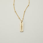Introducing the Moon Phase Mini Bar Necklace, featuring a stunning moon phase mini bar pendant and dainty curbed satellite Harlow Chain. Embrace the night sky and make a bold statement.